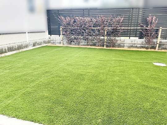 人工芝の施工も行っております(*´▽`*) 転倒時のケガ対策・ペットの肉球ケア対策・照り返し対策・見た目の印象としていかがでしょうか?