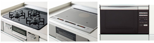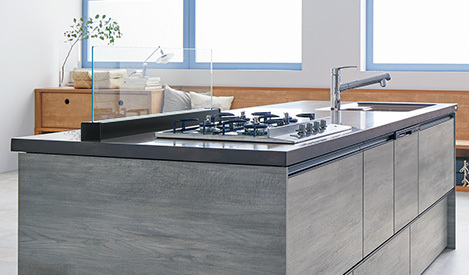 グリルがないことで前面を扉面材で合わせられるコンロ。よりスタイリッシュになった機器がコーディネートの幅を広げます。
