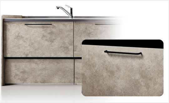 人工大理石のワークトップと組み合わせて上質なコーディネートが実現できるカラー。ワークトップと同系色でそろえたり。色を違えてアクセントに使ったりと楽しめます。