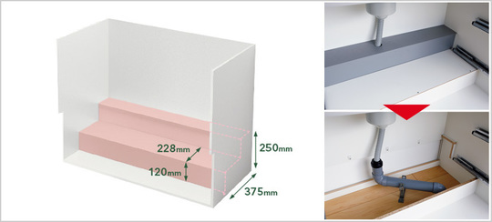 引き出しタイプでも、配管スペースをしっかり確保できます。