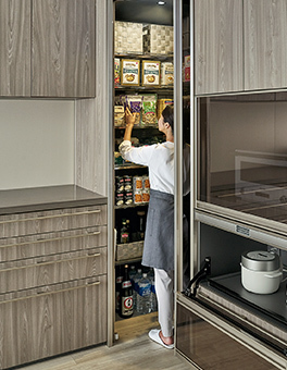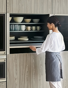 よく使う食器を素早く取り出せる、アクセスウインドウ付きの2ウェイクローゼット。