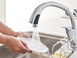 意識せずに水を出し止めできるので、大幅な節水を手間なく実現できます。