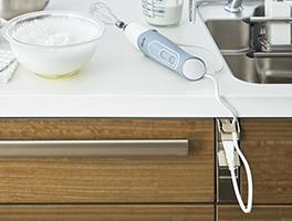 コードの位置を気にせずハンディタイプの調理家電が使えます。