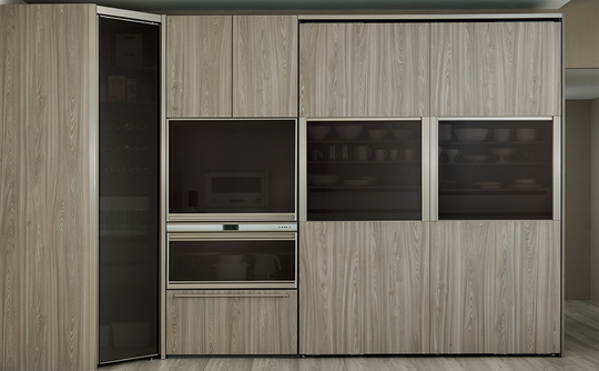 インテリアとして空間に美しく収まりながら、使いやすさを高める工夫を凝らした大型収納。