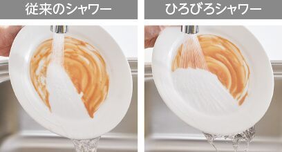 ワイドで洗浄力のあるシャワーでサッときれいに洗い流せます。