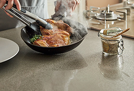 高温のフライパンや鍋を直接おいても、変色や変形がありません。