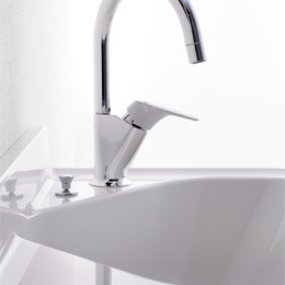 奥行きコンパクトでありながら深型洗面器を実現。水汲みなど多目的に使用できます。