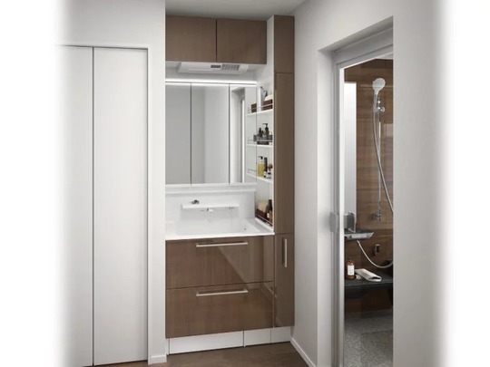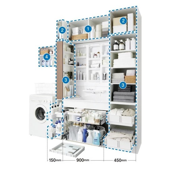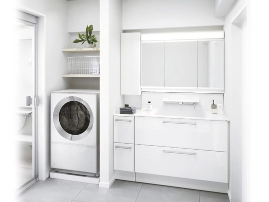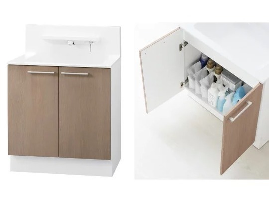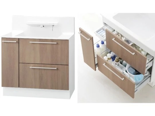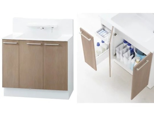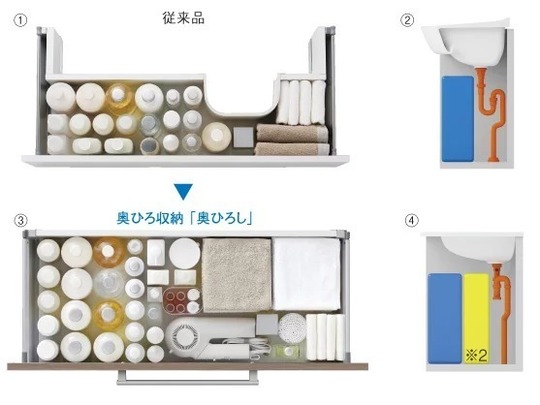 今までムダなスペースの原因になっていた配水管の配慮や構造を見直すなど、TOTO独自の工夫によって、広い収納スペースが生まれました。