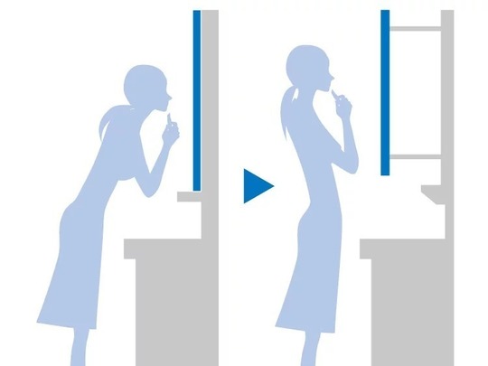 袖鏡を手前に引き出せるので、身体をかがめずラクな姿勢で使えます。コンタクトレンズの装着や、お化粧の時に便利です。