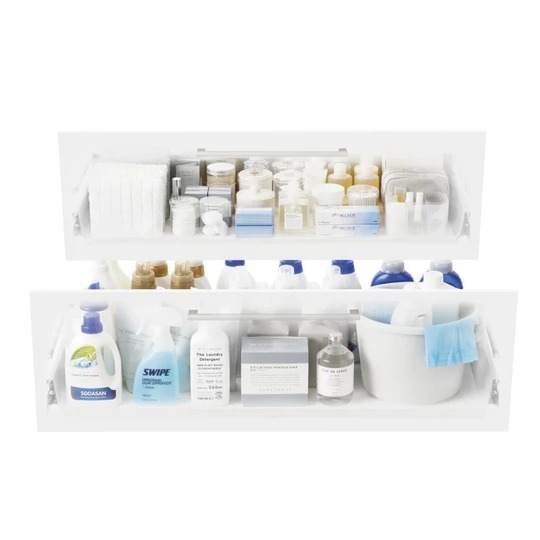 サイズや位置の異なる引出しに、小物から大きな物。よく使う物から日用品のストックまで、効率よく収納できます。一目で見渡せるので出し入れも簡単です。