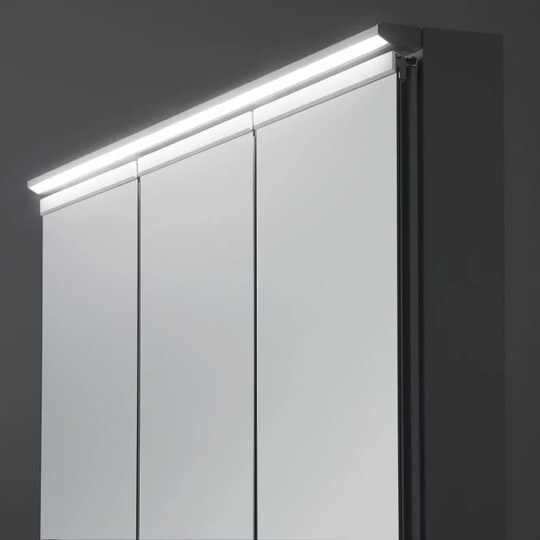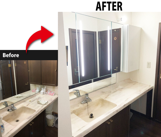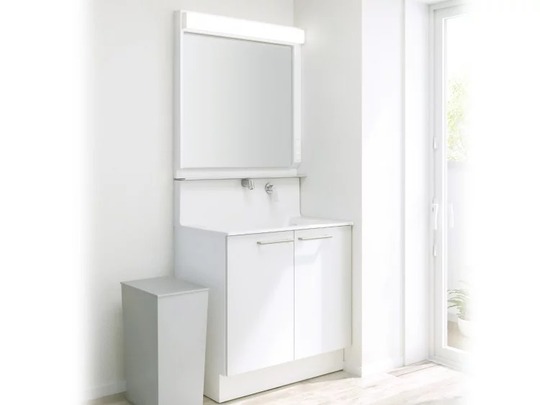 鏡の間口いっぱいにLED照明を設置。広い範囲を均一に明るく照らします。省エネで長寿命のLEDだから経済的です。