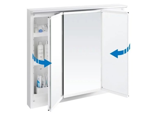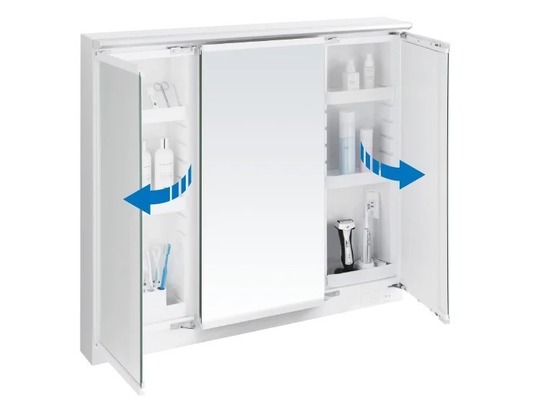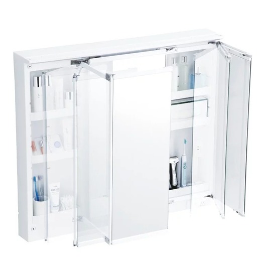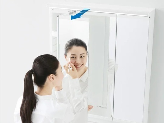 外側に開くと、鏡裏の収納小物が取り出せます。