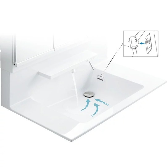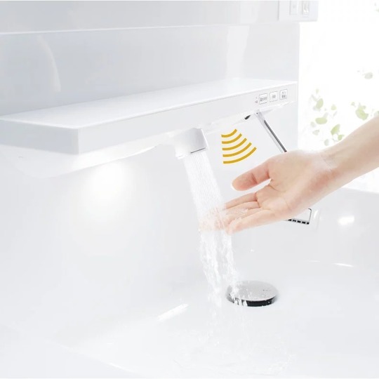 センサーが手を感知して、自動で水が使えます。手や顔を今までになくスムーズに洗える快適機能です。