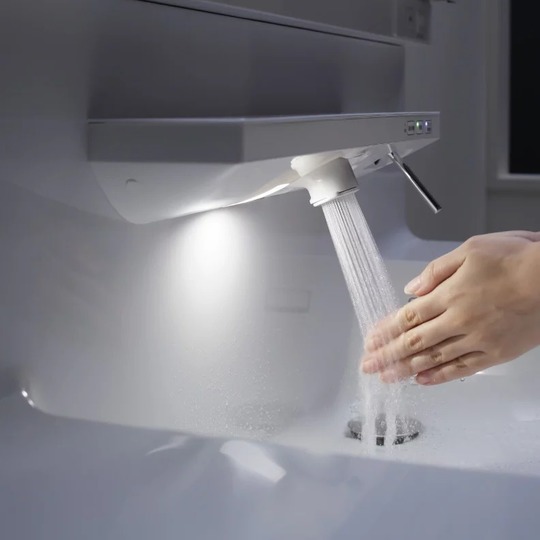 水を出すときに、自動で手元を明るくし照らします。夜中にまぶしい照明無しで水栓が使えます。