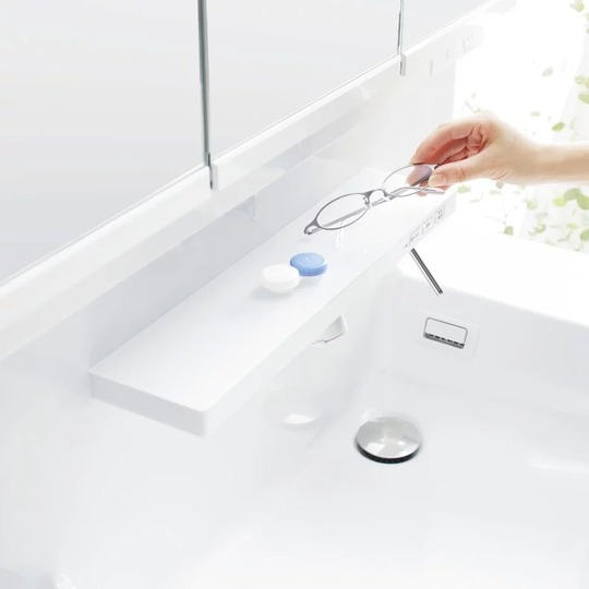 物の一時置きに便利な棚、レバーに触れずに自動吐水する水栓金具、さらに除菌やエコまで。ラクラク&快適にする5つの先進機能が従事しています。