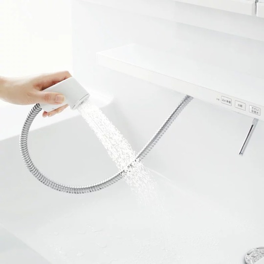 引出してハンドシャワーとしても使えます。ボトルの隅々まで水で洗い流せるので、お掃除もぐんとしやすくなります。