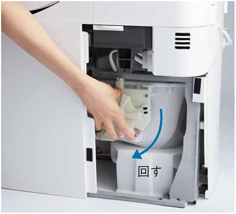 サイドカバー内にある非常用の手動のハンドルを回して、流すことができます。