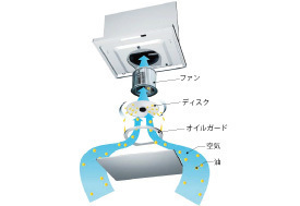 【オイルスマッシャー】高速回転するディスクが、油を約90%キャッチします。