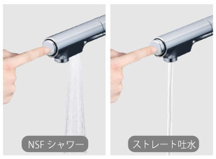 シャワー・ストレート吐水の切替はプッシュ式で簡単です。