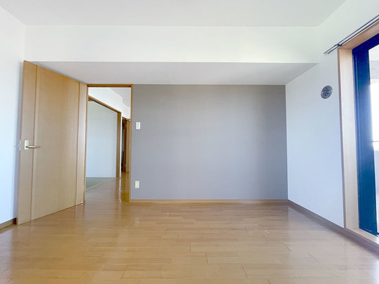 壁・天井とパキっと白に張替え。もともと明るいお部屋ですが、さらに白い壁が光を集めてきれいになりました(^o^)丿