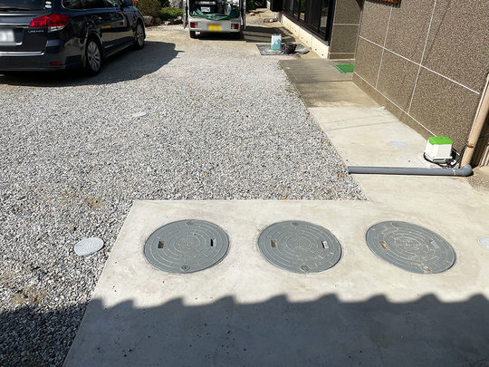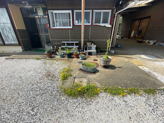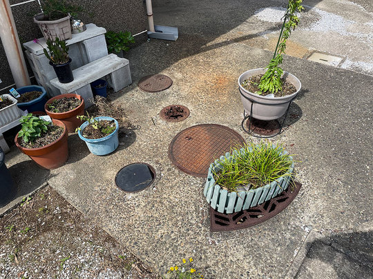 浄化槽の蓋が錆びていて、植木鉢などでカバーしていました。