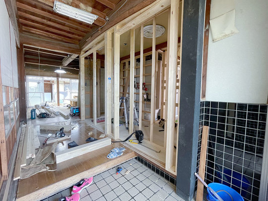 元キッチンダイニング→風呂・洗面周辺:建築中の様子