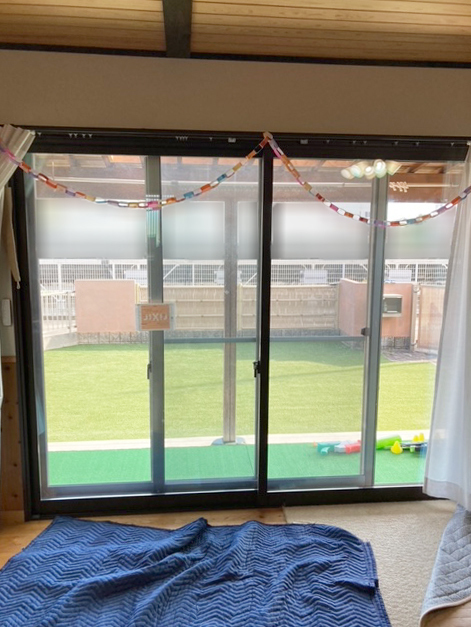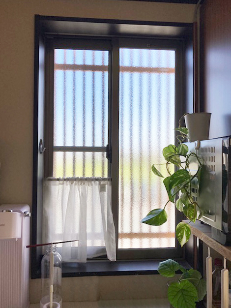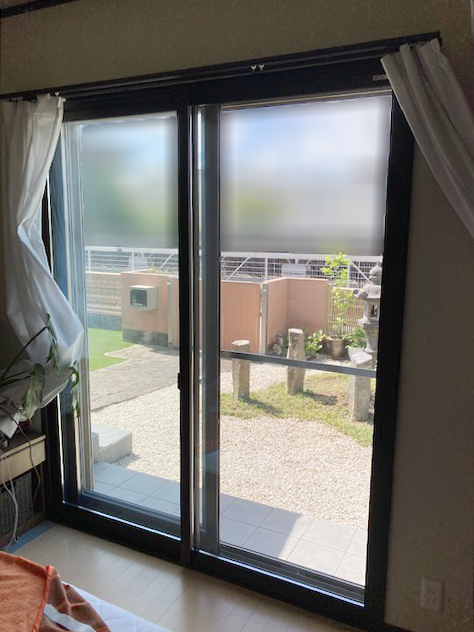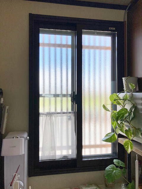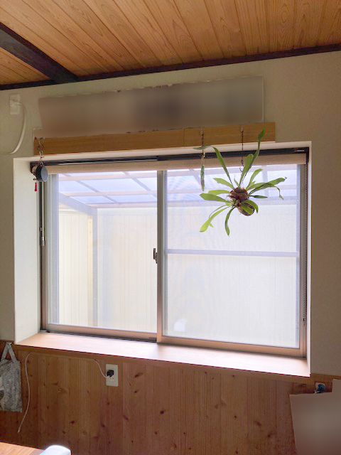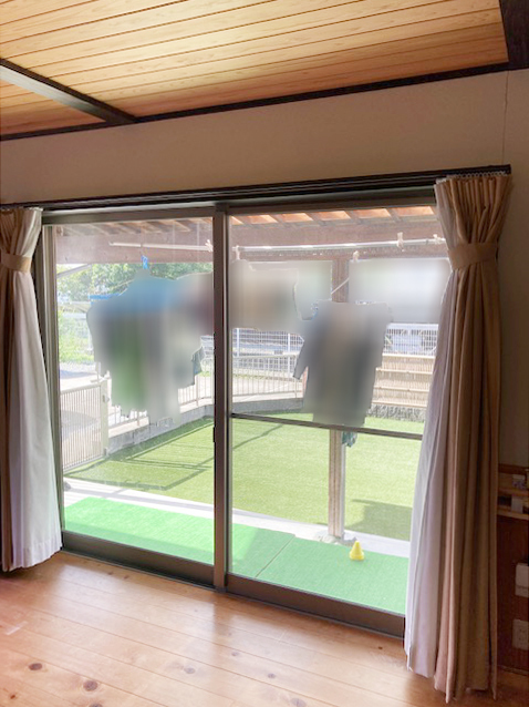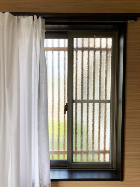 【内窓】アルゴンガス入りlow-e複層ガラス:一番大きな窓なので、かなり効果が実感しやすい場所になります。また、二重の窓になったので室外からの目隠し効果になります。