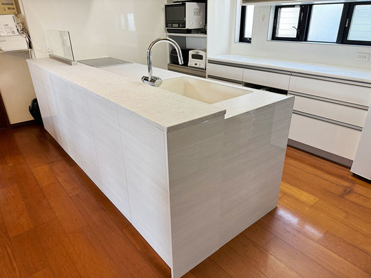 【クリナップ】最上級機種のシステムキッチンステディア。色:パティナオパール