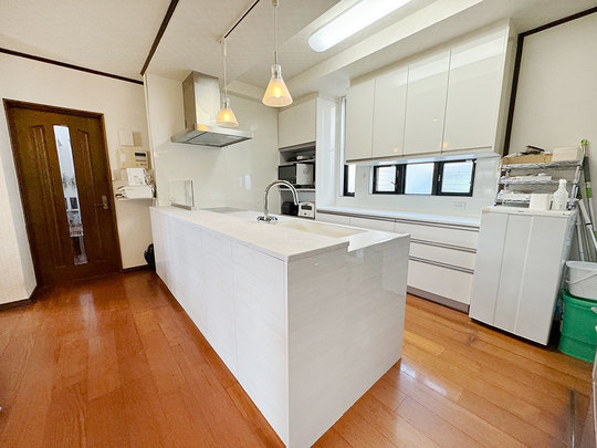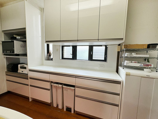カウンターはロータイプで一面収納ができるようになっています。