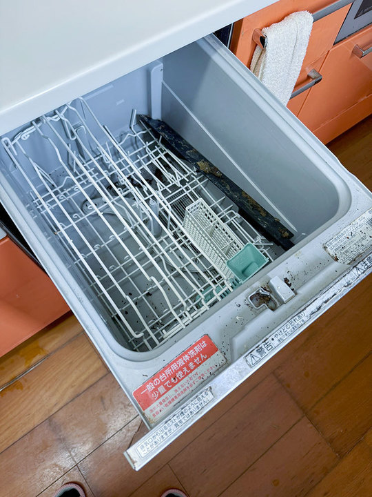 キッチンリフォームのキッカケとなった食洗器の故障。パーツがガバッと外れてしまった時はびっくりしたそうです。