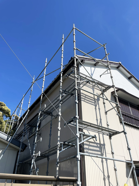 二階建て住居の屋根部分の工事の為、足場が必要となります。