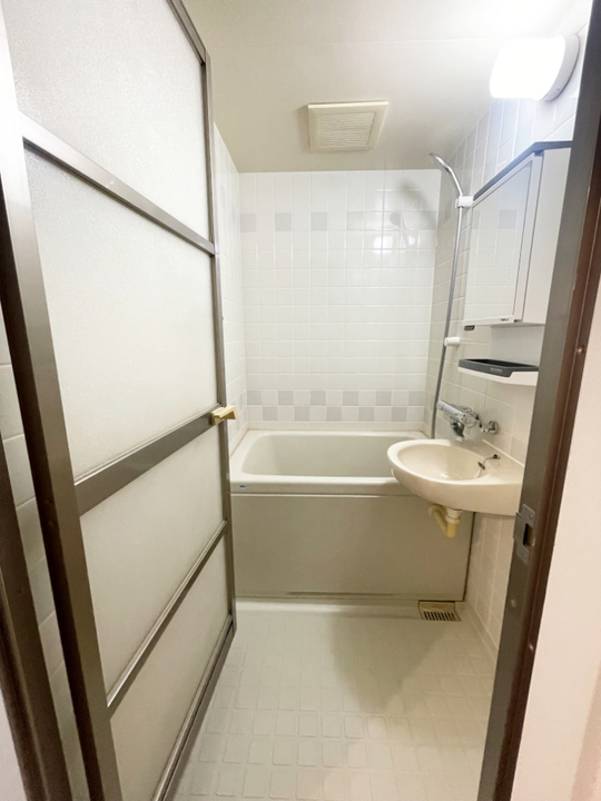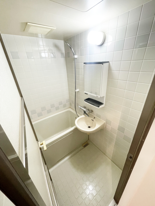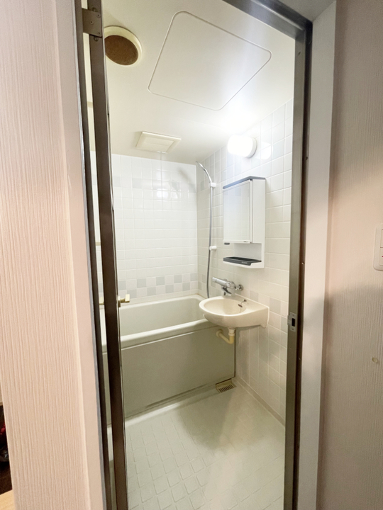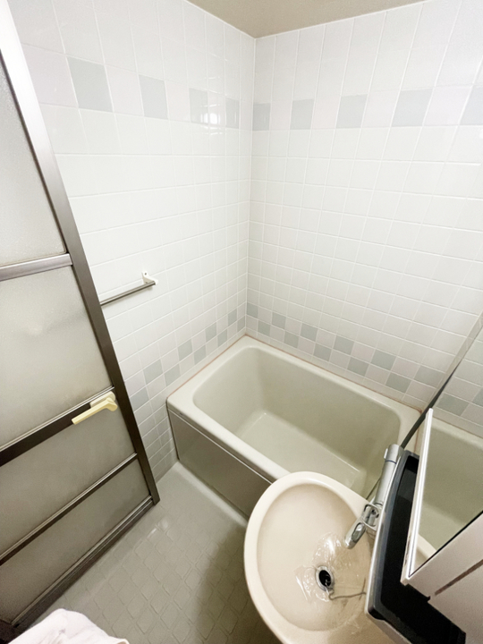 白がメインのタイル調のユニットバスでした。