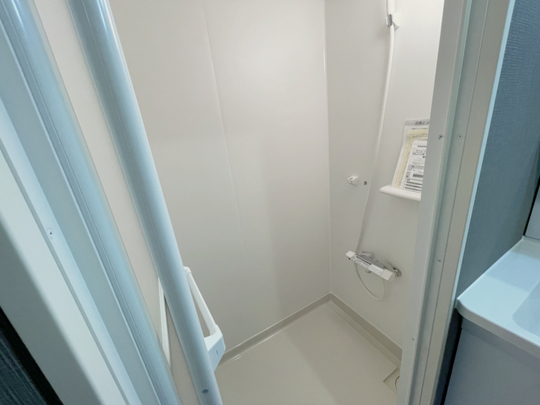 シャワールーム前に洗面スペースができたことで、目線や脱衣も気にしにくい空間になりました。