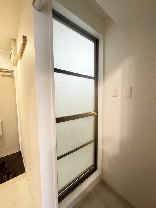 ワンルームの部屋からシルエットが見えてしまいそうなすりガラスの浴室ドアでした。
