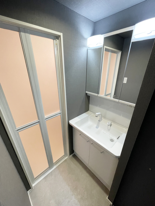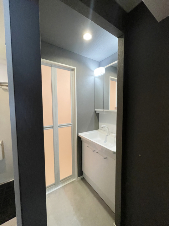浴室部分がシャワールーム。洗い場部分が洗面所になりました。