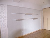 ◆デザイン性の高い壁掛けの棚をつけました。