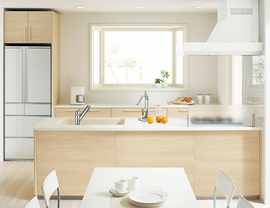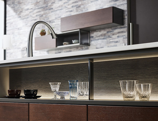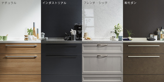 キッチンの扉はもちろん、ワークトップをはじめキッチンパネルまで、カラーや質感を組み合わせることで、こだわりのスタイルでのコーディネートを実現します。