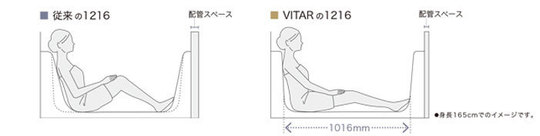 スペースが限られることの多い浴室リフォームでも、ヴィタールのバスタブは、業界最大クラスのゆったり感。くつろいだ姿勢でリラックスできます。
