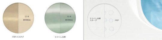 独自の人造大理石バスタブうつくし浴槽「スターク」は、熱水に対する耐久性が高いため、長年使用しても経年劣化が少なく美しさを保ちます。直接肌にふれるバスタブ表面のなめらかさと美しさをキープすることで、長年経っても心地よい入浴が楽しめます。