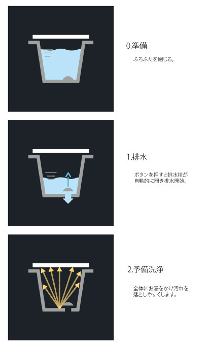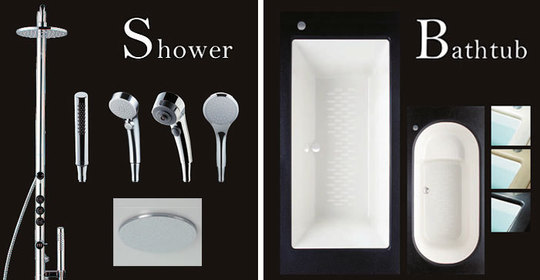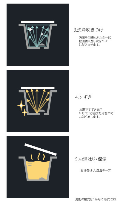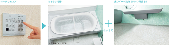「ほっカラリ床」・「エアインシャワー」・「魔法びん浴槽」