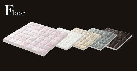 雨上がり、磨かれたように輝く石畳。その不変の美を、足元に映しとりました。ほっとするやわらかさはそのままに艶やかな光沢と、深みのある質感、そして、コマ面をランダムに傾けることで、多彩な輝きを愉しめます。