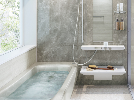 ひろびろ感にこだわったスクエアタイプ。スタイリッシュなデザインで、浴室空間をひきしめます。