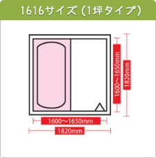浴室内寸が1600×1600mmのタイプ。1坪(1820mm)に収まるサイズ