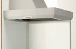 オープンキッチン(例:スクエアUタイプ)にはサイドサイクロンフード。サイドサイクロンフード専用のガラスパーティション(半透明ガラス製)をご用意しています。