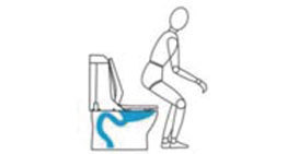 便座に座ると自動で便器にミスト(水道水)をふきつけて水のクッションを作ります。