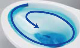 渦を巻くようなトルネード洗浄で、少ない水を有効に使って前方の返し部分から後方部まで便器ボウル面をまんべんなくしっかり洗浄します。
