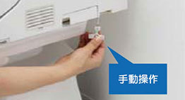 便器の右側に格納している手動レバーを引っ張ることで、停電の時でも水を流せます。(乾電池は不要です)