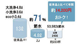 TOTOならではの節水技術で、環境にやさしく、しかも経済的です。